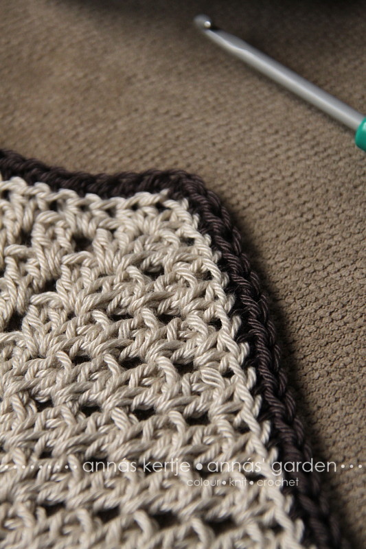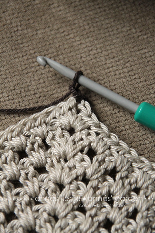 ... majd a hatszögek összehorgolásánál ismertetett módon (előző poszt) hozzáhorgoltam a félhatszöget a hatszöghöz.