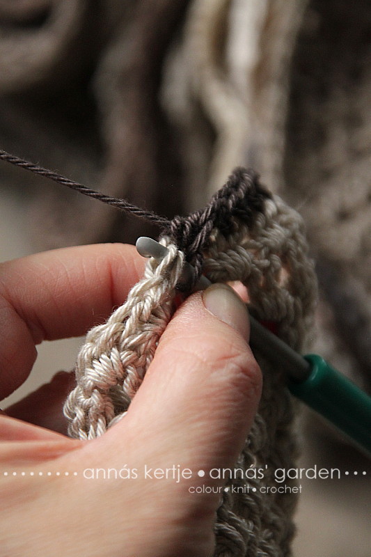 ... majd húzzuk át a tűn lévő összes hurkon. Így készülnek azok a félpálcák, amikkel összehorgoljuk a megfelelő oldalakat. Nem olyan bonyolult ám, bele lehet jönni hamar. És igen, az ott macskaszőr :)