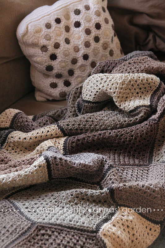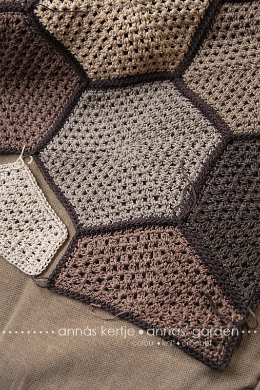 Imádom a hatszögeket, a horgolást és a takarókat, főleg a nagyimintásakat. A szürkéket és a barnákat, a földszíneket és a kövek árnyalatait. A kiszáradt pocsolya szürkésbarnáját, a gombák megannyi finom árnyalatát... Épp ideje volt ezt mindet egybegyúrni, így született meg az ötlet, hogy ezekből a finom színekből horgoljak hatszögmintás takarót :)