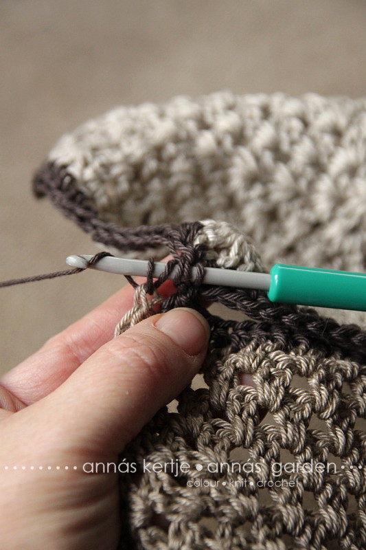 Horgoljunk még 7 környi erp-t szaporítás nélkül, majd még egy környi rp-t, szintén szaporítás nélkül. Ksz-mel zárjuk az utolsó kört. Dolgozzuk el a fonalvégeket. Mind a kettőt :)
