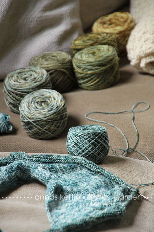 Amikor növénnyel festek, mindig meglepetések várnak, mindig izgatottan csomagolom ki és öblítem a fonalakat, hiszen csak ekkor látszik a végeredmény. Sok fonalat festek, és időnként egymás mellé kerülnek olyan motringok, amiket már nem tudok elengedni, ahogy meglátom őket együtt, természetes színharmóniában. Néha kicsit küzdök magammal, mert ezeket a fonalakat eladásra festem, igen, nem magamnak, van is, hogy sikerül meggyőznöm magam, hogy jobb helyen lesznek a gombolyagok másnál. De van, hogy bármennyire igyekszem ellenállni a kísértésnek, nem sikerül. Magukkal ragadnak a színek, elindul a fantáziám, és ha látom magam előtt, hogy mivé szeretnének válni a fonalak, már nem menekülhetek a varázserejüktől :)